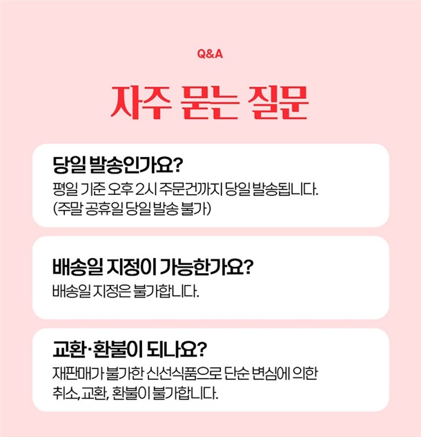 · 교환/반품 신청은 배송완료 후 7일 이내에 가능합니다.